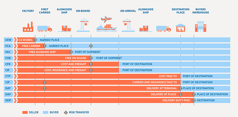 At Ubique (UFG), we ensure seamless global shipping by operating under internationally recognized Incoterms. Our expertise in these trade terms guarantees clear responsibilities, cost distribution, and risk management for both buyers and sellers. Whether you require EXW, FOB, CIF, or DDP, we tailor our shipping solutions to meet your needs with full compliance and transparency. Contact us today to find the best Incoterms option for your shipment!